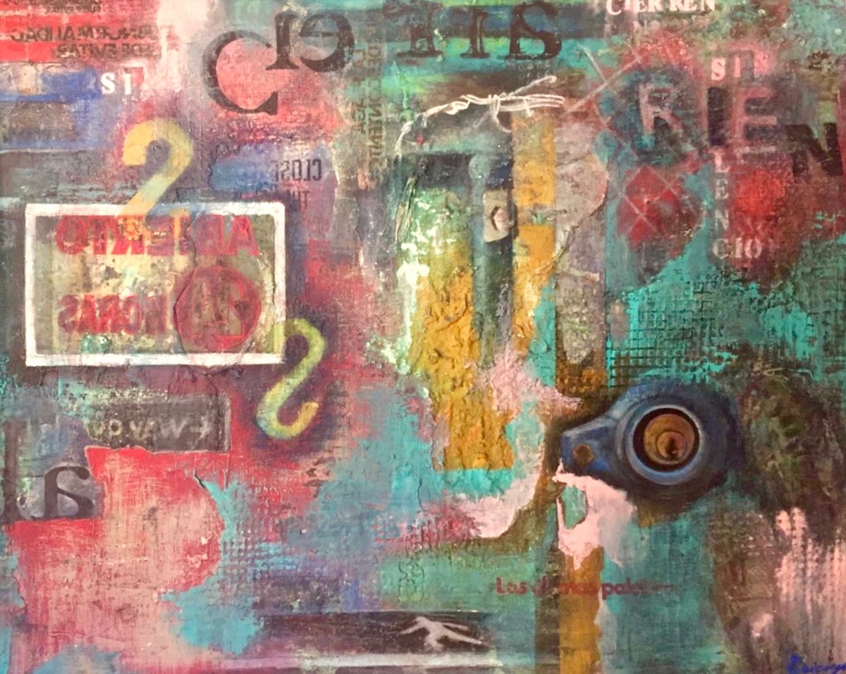 Yo busco, tu corre mixed media on canvas 100cm x 90cm 2018