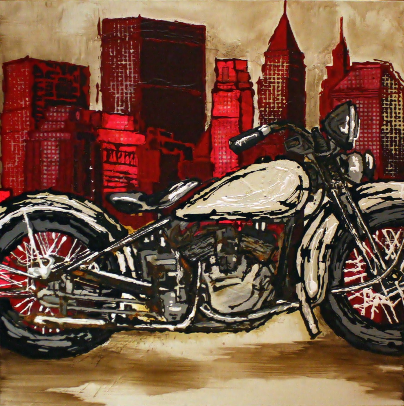 NY harley mixed media on canvas 100cm x 100cm 2014