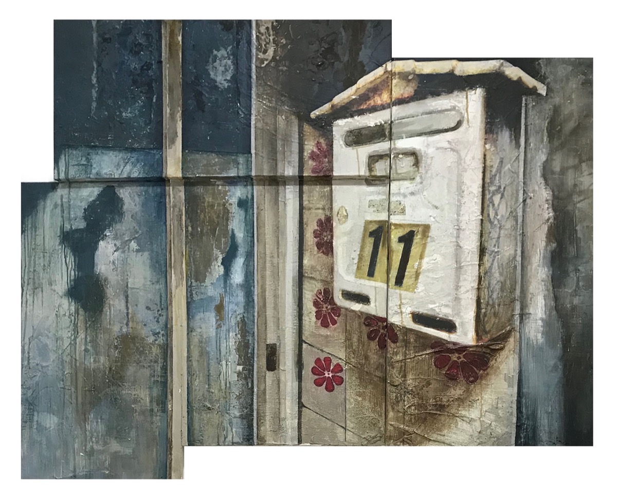 11 Postcards, no answer mixed media on canvas 140cm x 120cm 2018