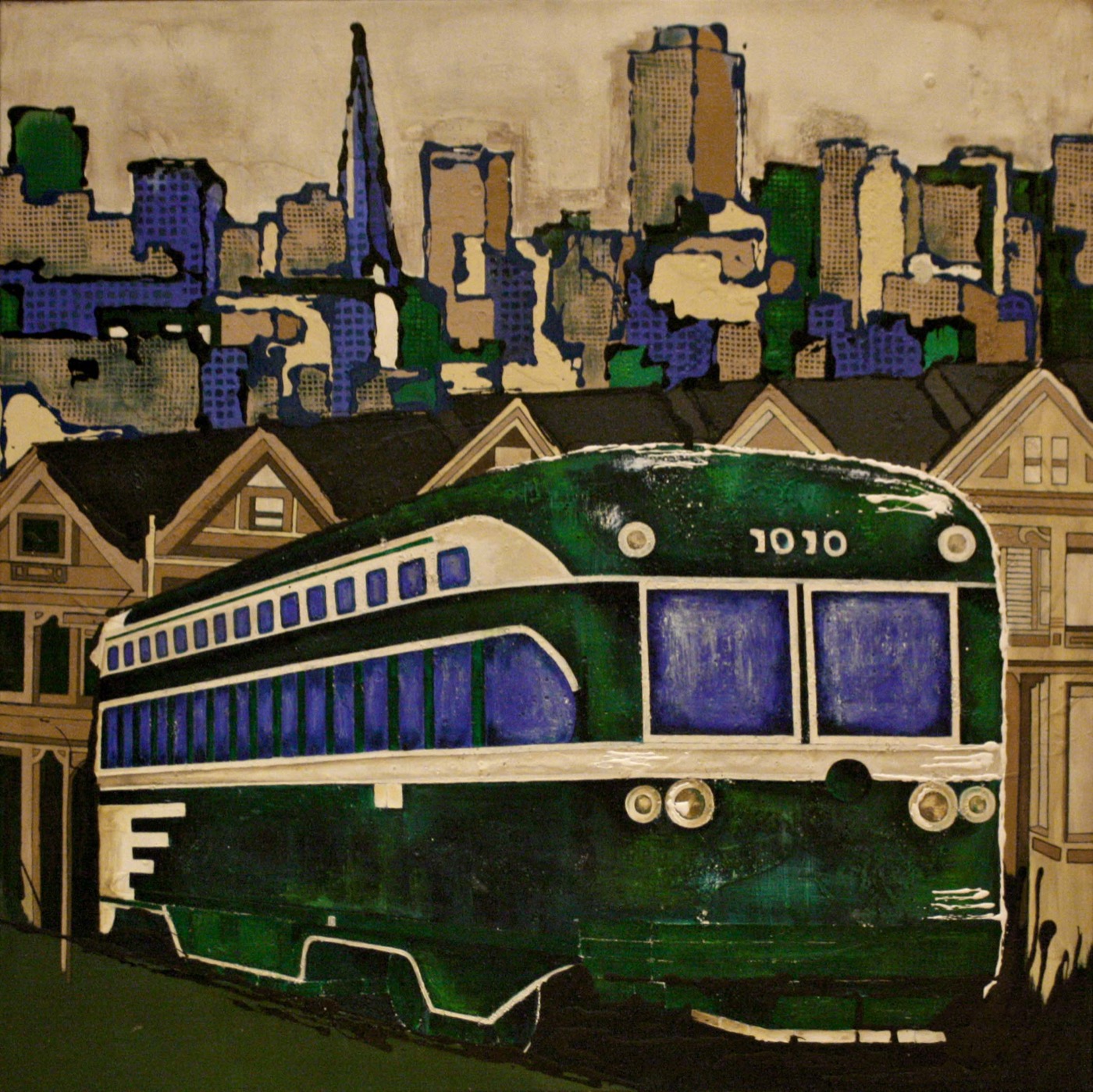 San Francisco tram mixed media on canvas 162cm x 130cm 2014