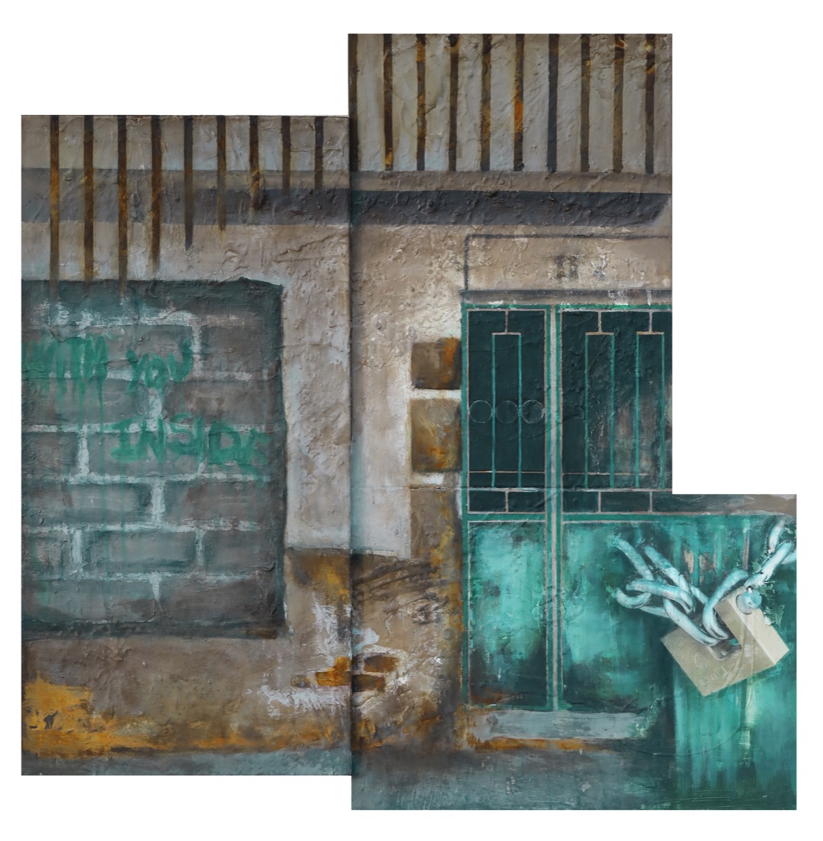 Closed the word mixed media on canvas 130cm x 89cm 2019